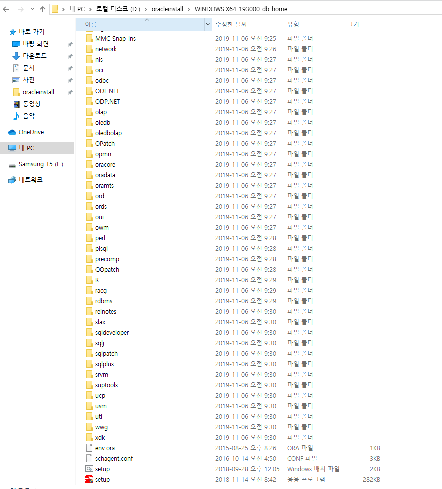 1. oracleDB 안의 압축의 해체한 파일 폴더를 들어간다.
