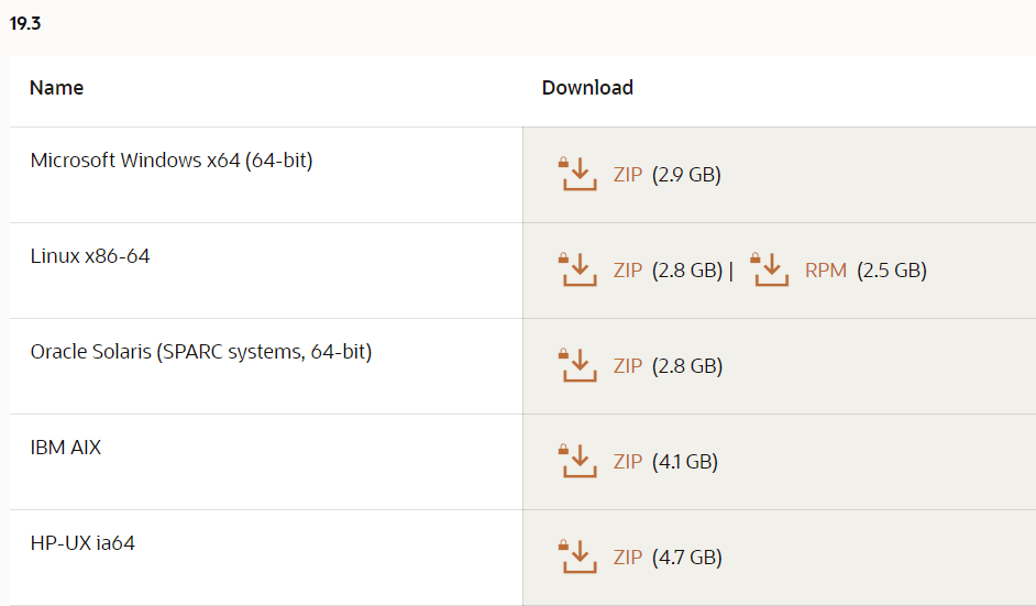2. 파일 다운로드 (Database 19c Enterprise/Standard Editions) - 여기서는 이 파일 선택