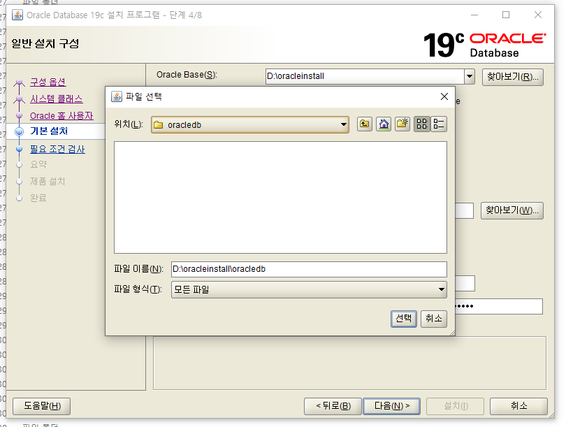 6. Oracle base 주소를 위에서 설정한 C드라이브 하위 폴더로 정한다.