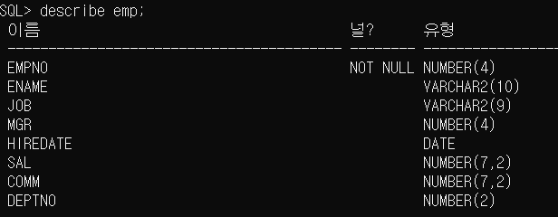문제 1 : emp 테이블에 컬럼이 무엇이 있는지?