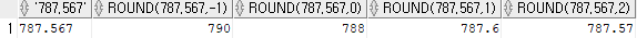ex) select '787.567', round(787.567,-1), round(787.567, 0), round(787.567, 1), round(787.567, 2) from dual;