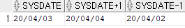 Ex) select sysdate, sysdate + 1, sysdate - 1 from dual;