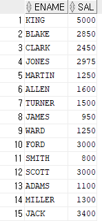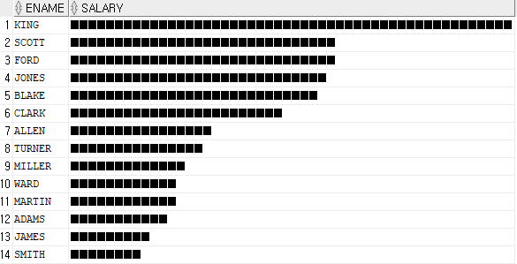 -> select ename, lpad('■', sal/100,'■') as salary from emp order by sal desc;