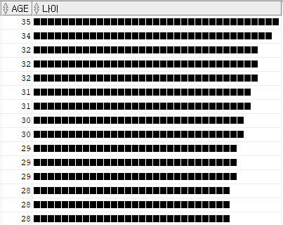 -> select ename, age, lpad('■',age,'■') as 나이 from emp11 order by age desc;
