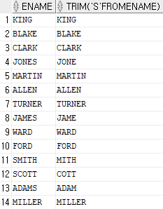 Ex) select ename, trim('S' from ename) from emp;