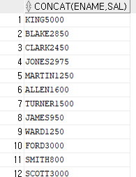 Ex) select concat(ename, sal) from emp; -> 2개밖에 안됨