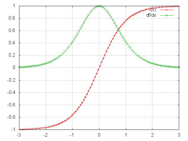 빨강색은 tanh 함수, 초록색은 미분을 하는 것인데, 미분을 하게 되면 결국