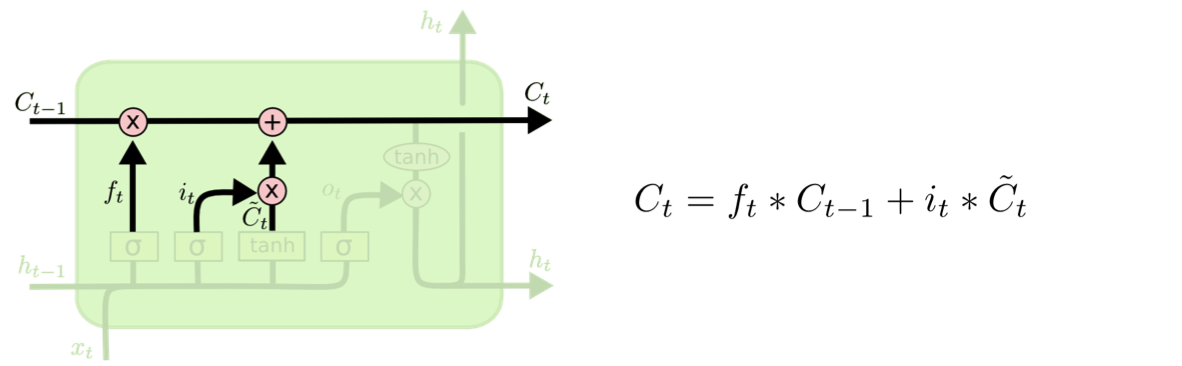 과거의 cell state를 새로운 cell state로 업데이트 하는 과정이다.