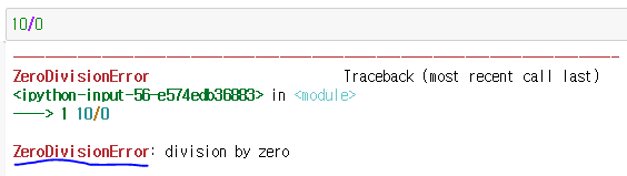 10을 0으로 나누는 것을 코드로 작성했을 때 어떤 결과가 나올까?