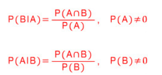 사건 A가 조건으로 일어났을 때 사건 B의 조건부확률 : P(B | A)
