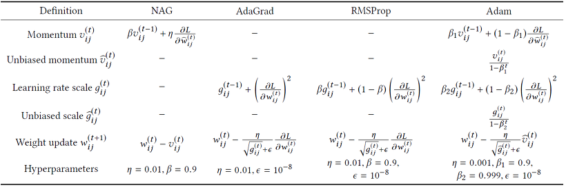 가중치를 update하는 식은 adagrad와 같으나 g의 식에서 B값이 등장한 것을 볼 수가 있다. 베타값은 지수평균 업데이트 계수를 나타내며, B값으로 인해 g가 계속 증가하는 일이 없어서 학습을 오래할 수 있게 된다.