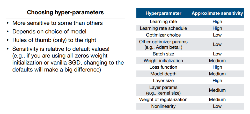 다양한 하이퍼 파라메터들을 수정하면서 최적의 성능을 구할 수 잇는데, 일반적으로 하이퍼파라메터들의 중요도는 아래의 표를 참고하면 도움이 될 것 같다.